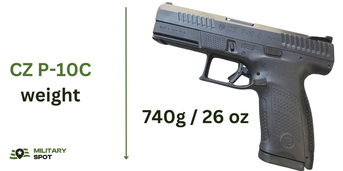 The gun is only 740g heavy with empty magazine in it. Compared to another CZ compact sized pistol CZ P-07, the CZ P10C is 40g lighter.